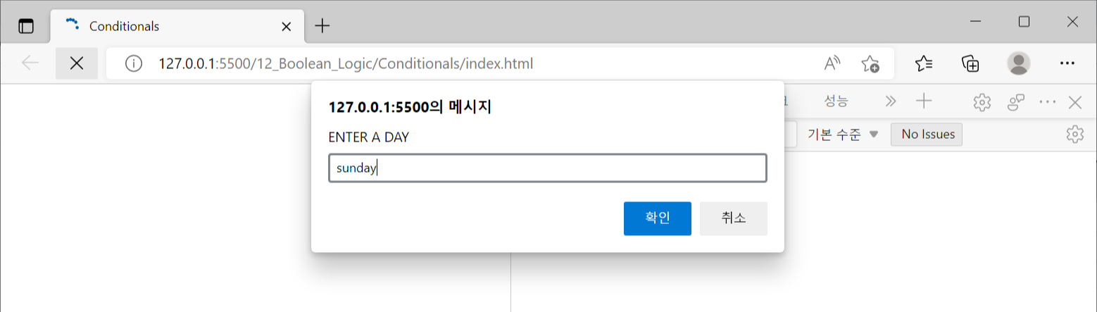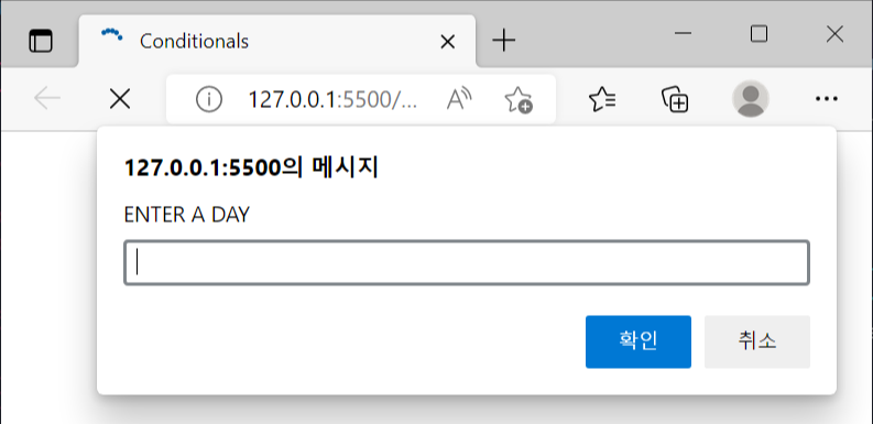 // const๋ ์์. prompt์ฐฝ์ ENTER A DAY๋ผ๊ณ ๋ฌ๋ค.